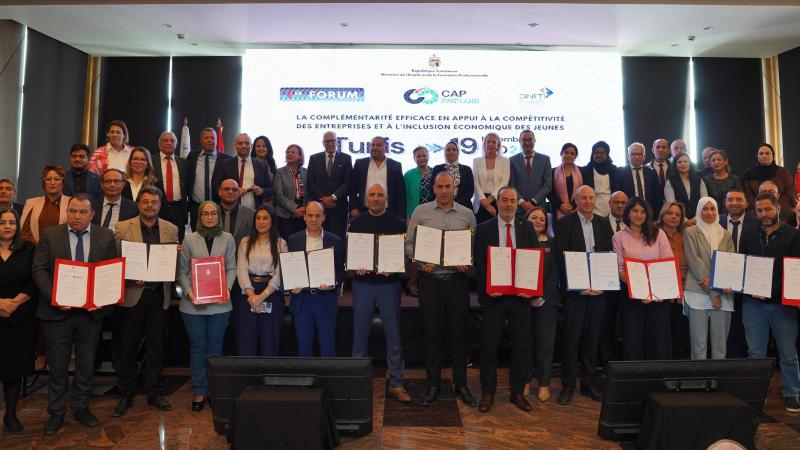 في إطار تعزيز التكامل بين القطاعين العامّ والخاصّ ومزيد الإنفتاح على الشراكات الوطنيّة والدوليّة لدعم الإدماج الاقتصادي للشباب، وتحت إشراف السيّد رياض شوّد وزير التشغيل والتكوين المهني، تم يوم الإربعاء 19 نوفمبر 2025 تنظيم الملتقى الأول لبرنامج "دعم تنافسية المؤسّسات والتّمكين الاقتصادي للمواطنين عبر إحداث مواطن الشّغل المنتظم تحت عنوان "التكامل الناجع لدعم تنافسيّة المؤسّسات والإدماج الاقتصادي للشباب" بالشراكة مع البنك االإفريقي للتنمية والإتّحاد التونسي للصناعة والتجارة والصناعات التقليديّة.